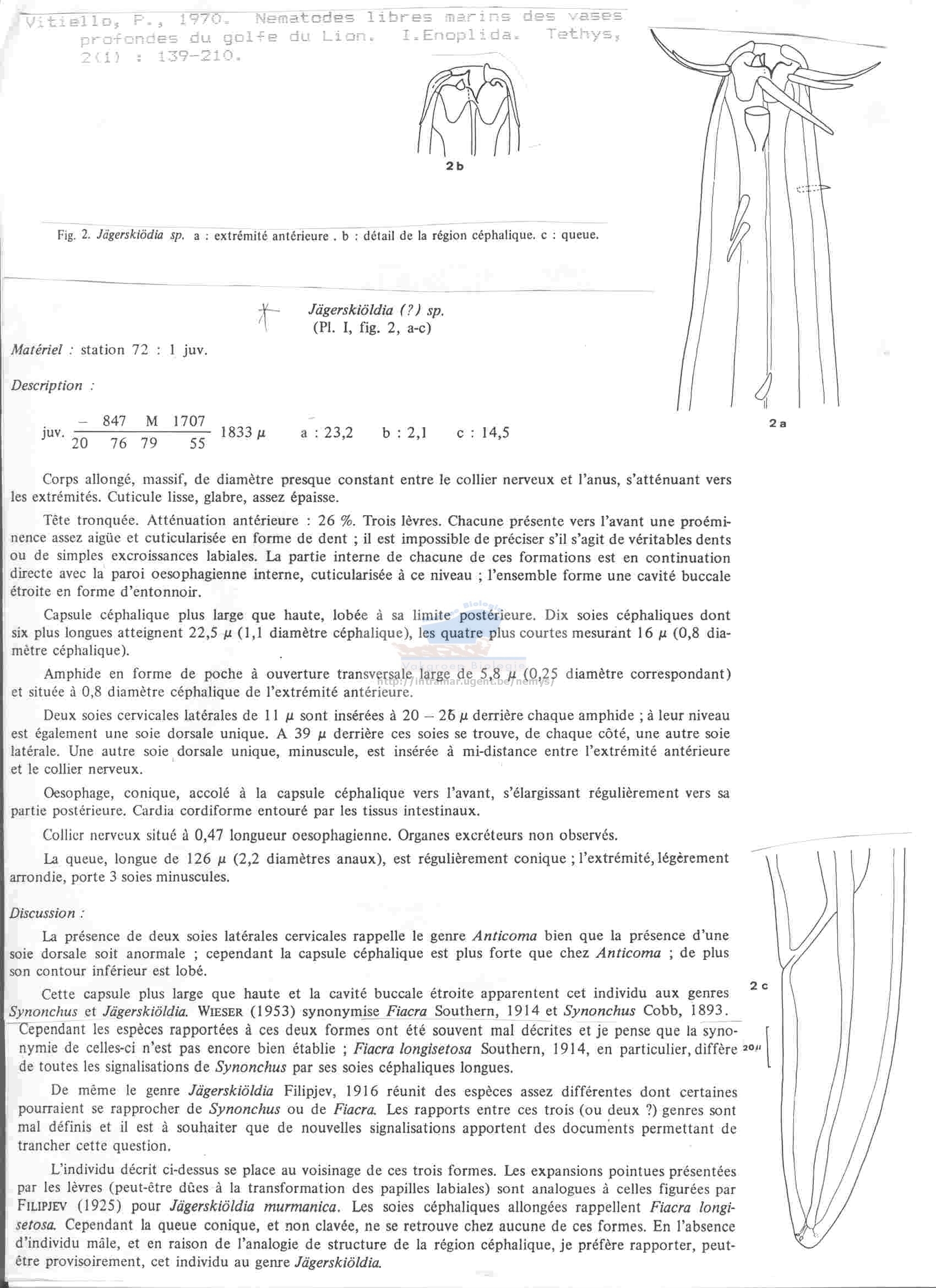 added on 2004-10-18474 viewsWoRMS taxaScan of literature (text) Jägerskiöldia Filipjev, 1916 accepted as Synonchus Cobb, 1894checked Vanaverbeke, Jan 2014-04-10From reference (S.d.). Nematode filing cabinet of the Marine Biology Sec...